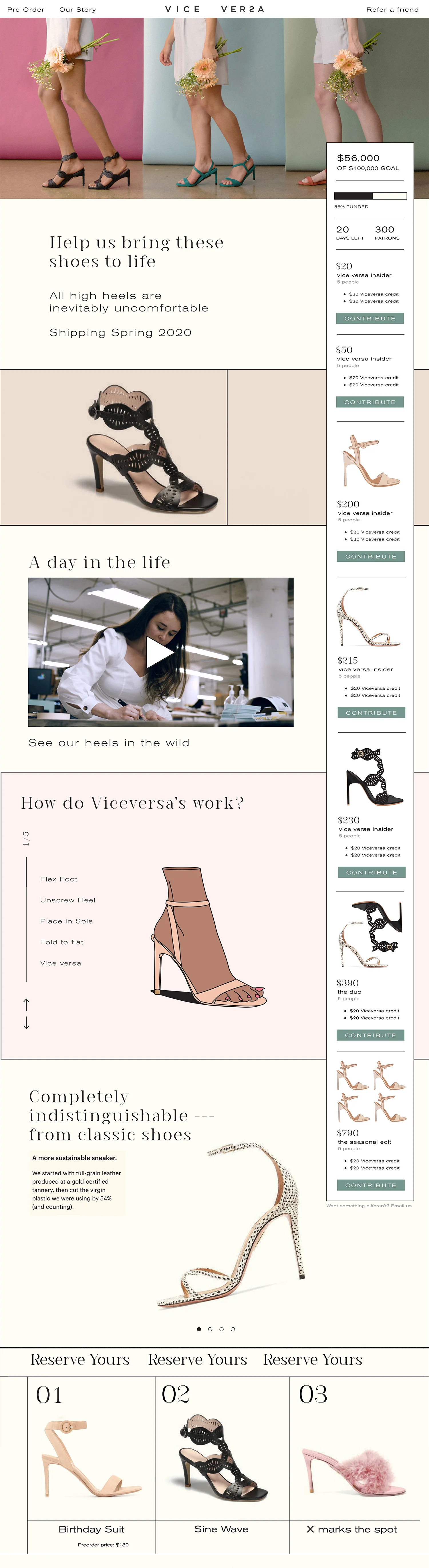 Vice Versa approached me to design their crowdfunding campaign site, hosted on their own page, to deliver a branded experience for customers learning about Vice Versa's products and tiered incentives for customers to crowdfund this project.